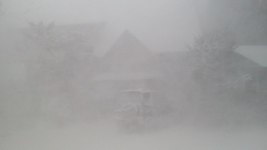 猛烈な吹雪で、ほぼ視界ゼロ。(+_+)
