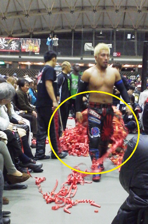 応援の紙テープも凶器に使われ、それでぐるぐる巻きに・・・