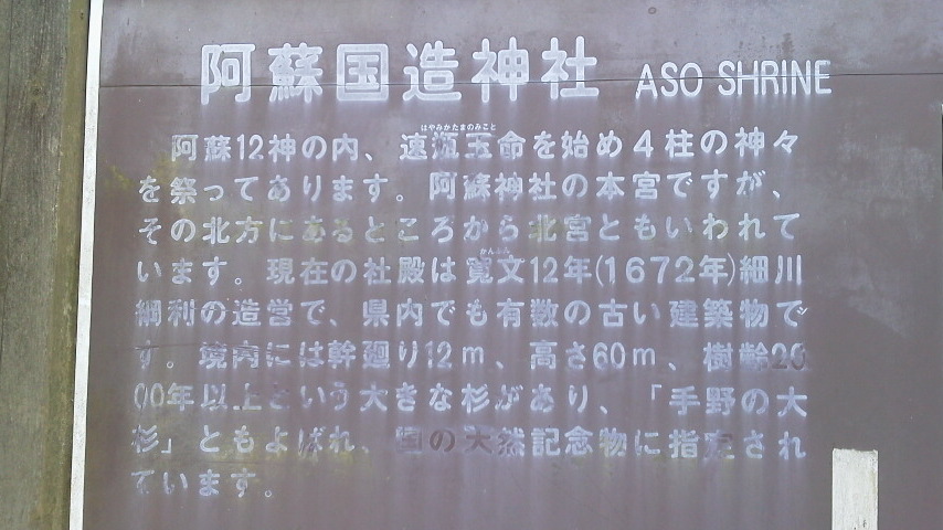 まずは、古い歴史を持つ、阿蘇国造神社から。