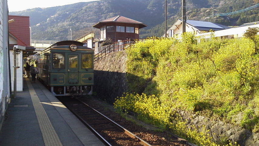 ほどなく、菜の花咲き乱れる立野駅に到着。