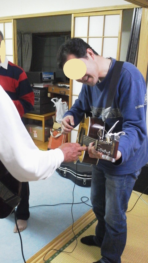 「これがG、これがAマイナー、これはD7。ほれ、弾いてみよ!!」