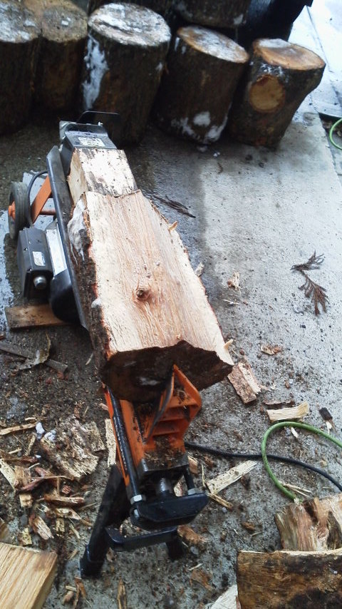 薪割機で、丸太を割ってみました。