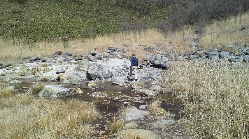 丘陵地帯から、春の小川を眺めつつ、また森の中へ。