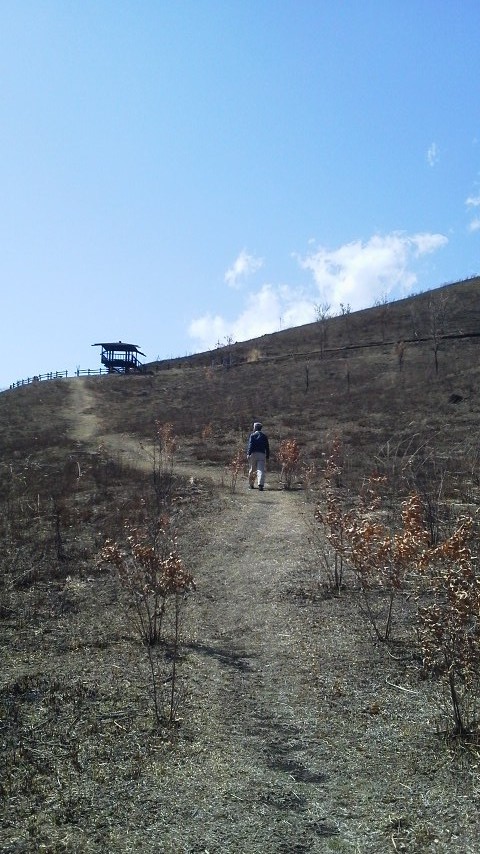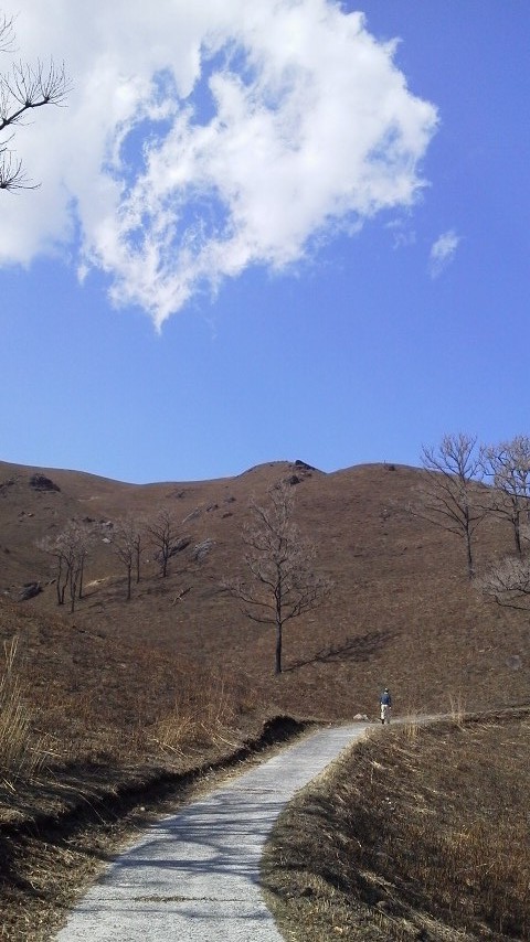 やがて、森をぬけ、野焼きの炭の匂いが漂う丘陵地帯へ・・・