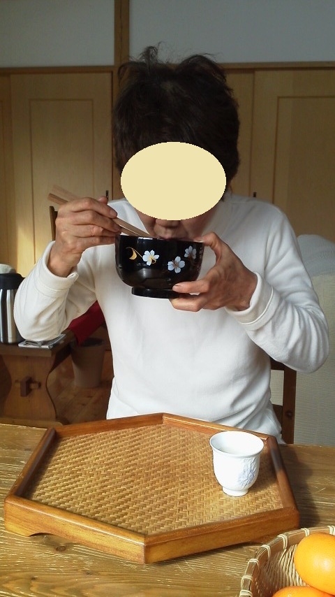 いつも私が作っているお雑煮をお昼ご飯に食べて頂きました。