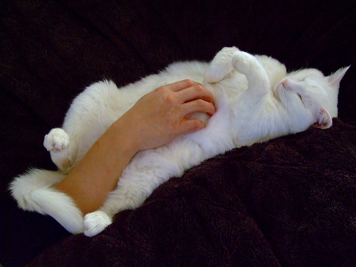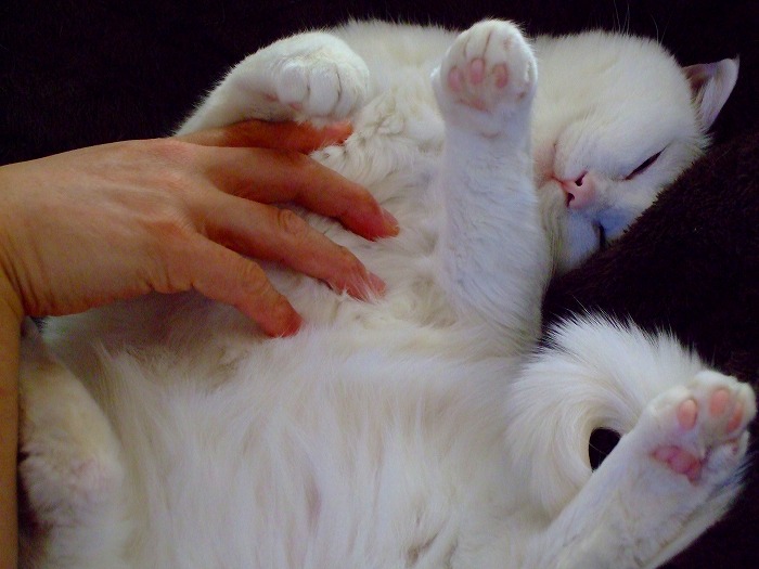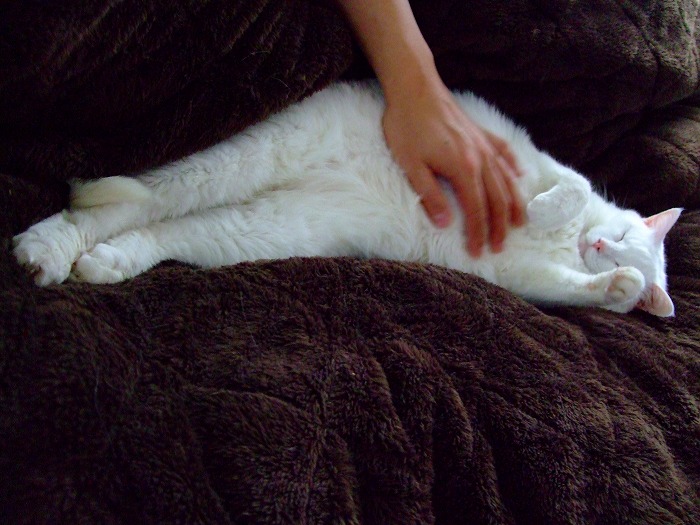 お腹を見せ撫でさせてくれるようになりました。(^o^)
